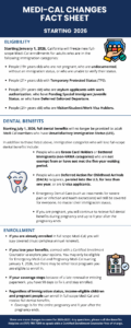 - If you lose your benefits, connect with a Certified Enrollment Counselor to explore your options. You may only be eligible for Emergency Medi-Cal and Pregnancy Medi-Cal starting January 1, 2026, but there may be other local programs you are eligible to enroll in.